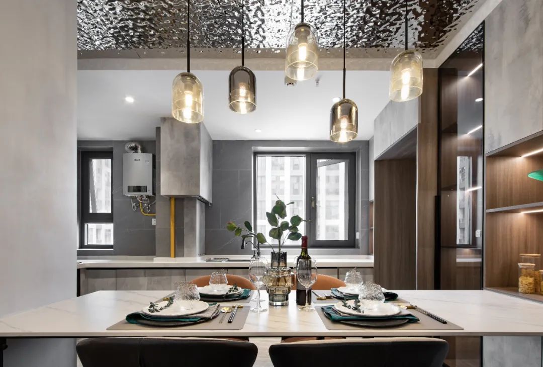 本案房主不是長在昆明住,所以餐廳考慮兩用功能!既兼顧了餐廳所需也兼顧接待所需!